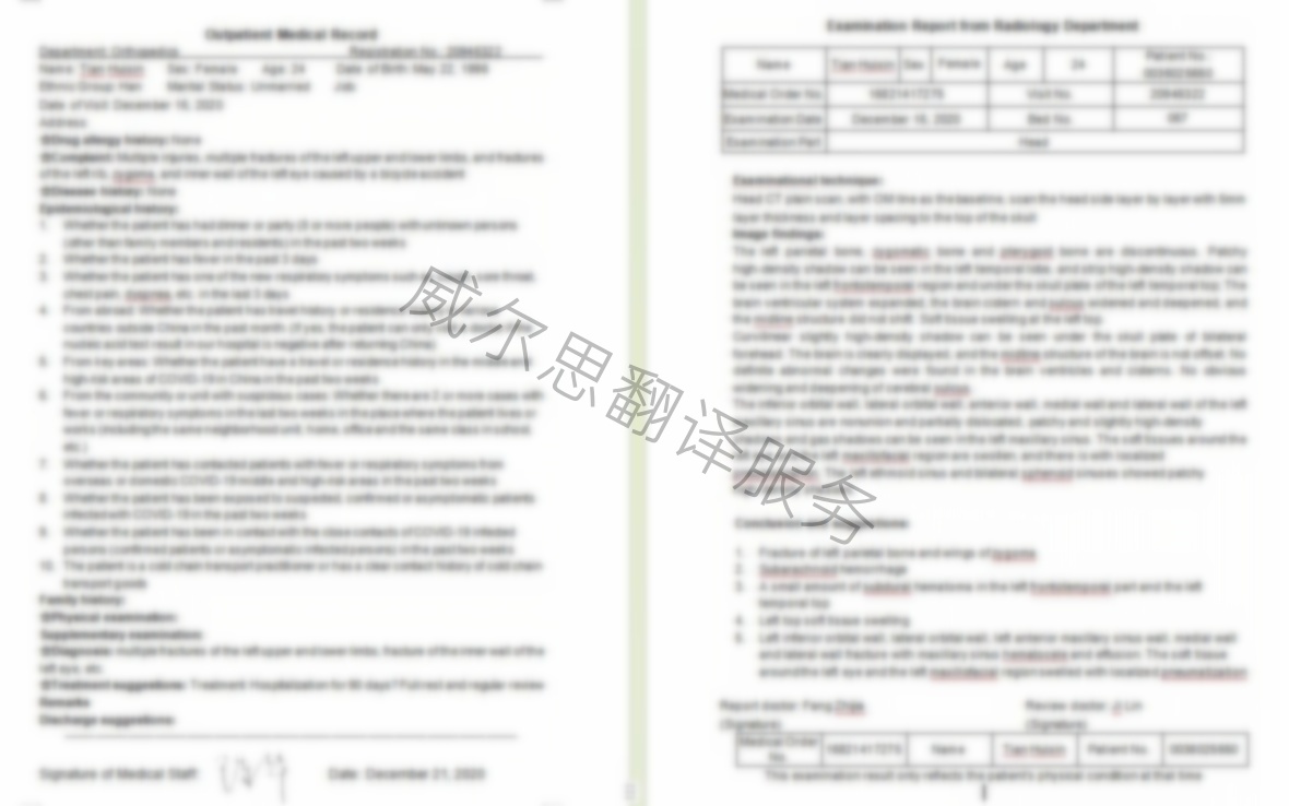 醫學檢查單&診斷書&住院記錄的翻譯對譯員的要求非常高,需要譯員具備醫學領域的專業知識,普通的譯員可能對該類型文件不是很熟悉,這類文件的重要性決定了您必須找一家法律翻譯公司來處理。